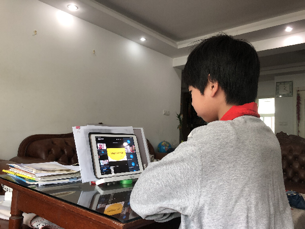 每天早晨,班主任Cathy老师都会带领我们进行晨读,在朗朗的晨读声中我也开启了一天充实的学习。每天的课程安排非常丰富,首先跟着空中课堂的老师学习,然后再以学校老师直播课的形式上课互动。每节课前我都及时做好课前准备,准时进入课堂,专心致志地投入学习,紧跟老师节奏,认真地做好上课笔记。课后及时完成各科老师布置的作业,有问题及时和老师请教,有好几次我的作业被老师批改为A+,那简直太有成就感了。同时,我会在每节课下课间隙安排自己做一次眼保健操,这样既可以劳逸结合,又可以保护眼睛。